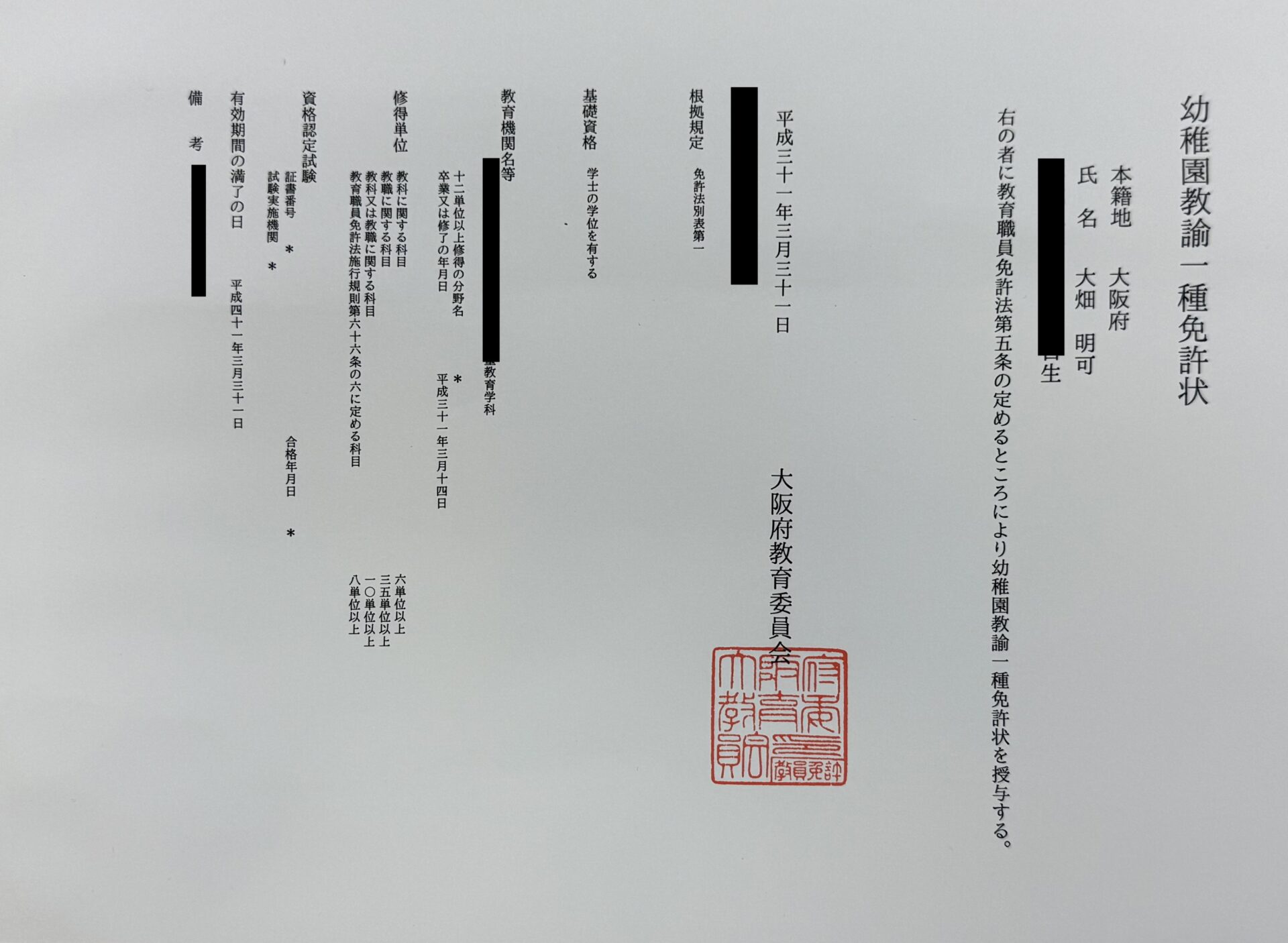 大畑明可(保育士・幼稚園教諭資格保有)